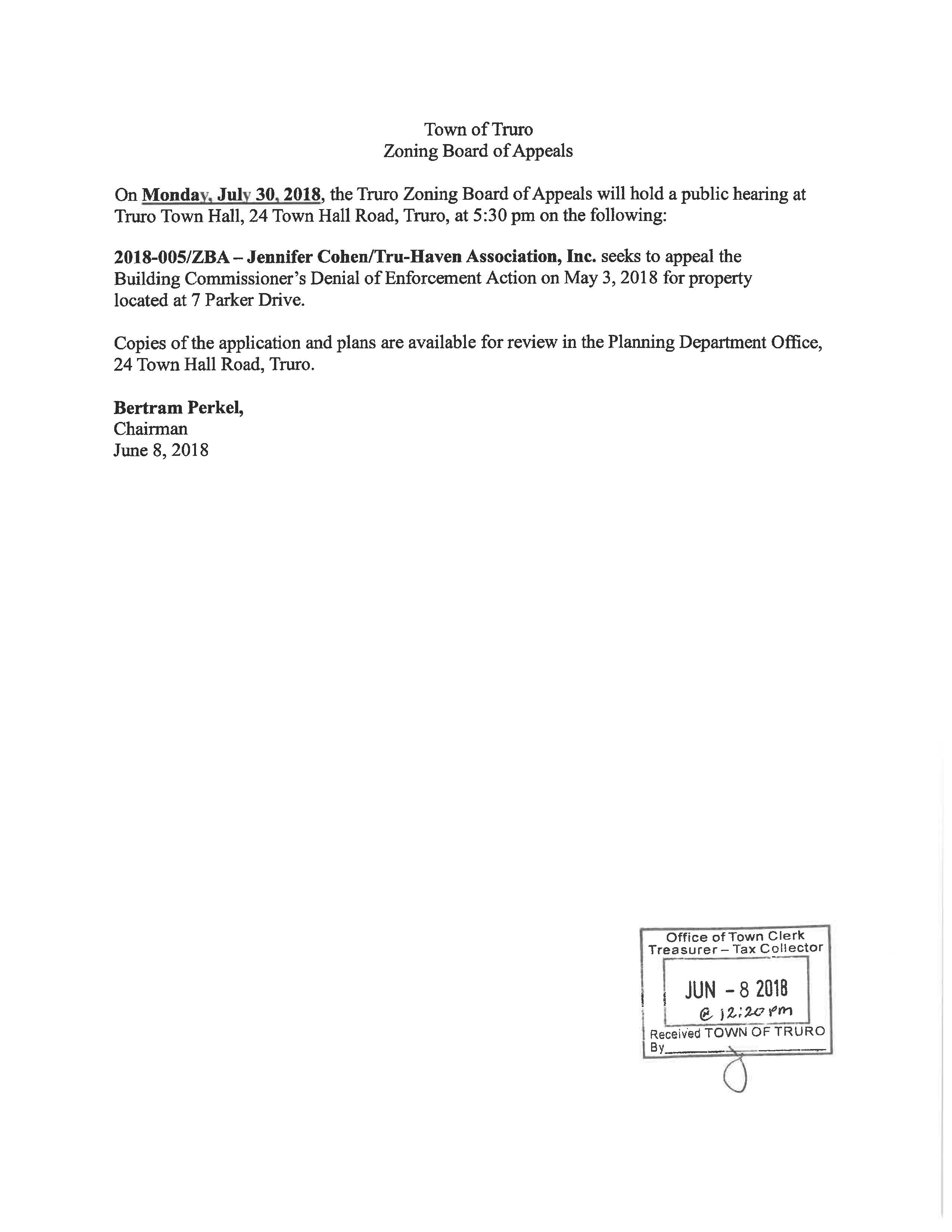 Zoning Board of Appeals Public Hearing-7 Parker Drive-5:30pm July 30th